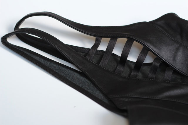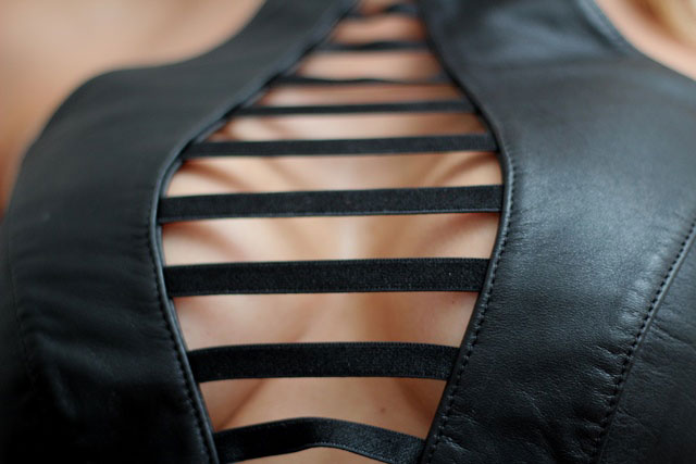 Go with this classy, elegant, leather bodysuit, for a bit more courageous bedroom apparel. If you match this sexy bodysuit with jeans or a leather mini skirt, you will be the femme fatale of the night...
