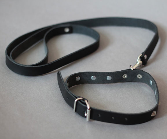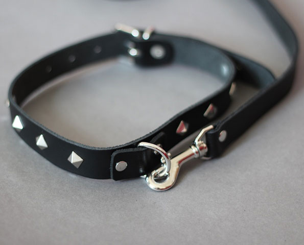 Studded BDSM Collar with Leash